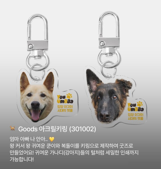 유엄빠의 연말 굿즈는 달력, 키링, 스티커 총 3가지 굿즈로 출시되었으며, 이 중 케빈스룸이 지원한 품목은 아크릴 키링 제품이다. 해당 굿즈의 수익금은 2025년도 유기견들의 구조와 치료, 새로운 삶을 시작할 수 있는 돌봄에 사용될 예정이다.