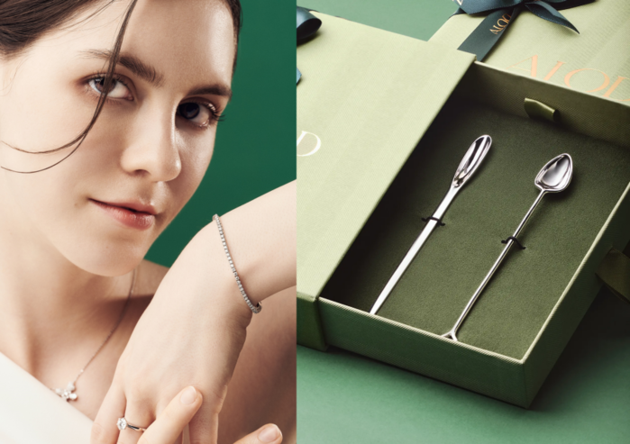 마지막 추천 제품인 실버 티스푼 2종 세트는 0.1 캐럿 미만의 멜리(Mele) 사이즈 다이아몬드를 스푼볼(Spoon bowl)과 손잡이가 맞닿는 부분에 넣은 제품으로, 총 6개의 티스푼 디자인 중 서로 원하는 취향을 고려해 선택할 수 있다.