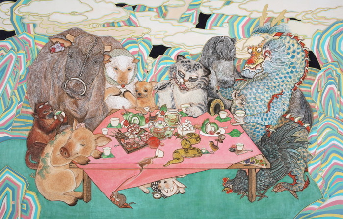 | ▲ 곽수연|tea time (十二支神)|121×189cm 장지에 채색 2016 |