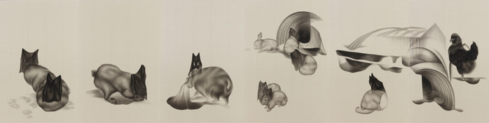 전시에서 토끼는 화목한 가족의 모습으로, 때로는 새로운 세상을 누비는 모험가로, 존재에 대한 탐구자로 그려지는 등 다양한 모습과 의미로 표현되고 있다.