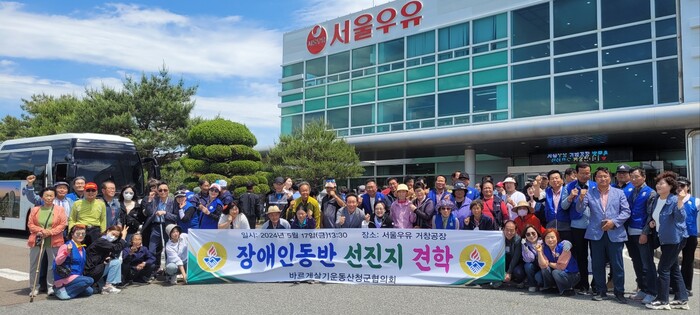 서울우유 거창공장과 창포원 등에서 진행한 견학에는 지역 지체ㆍ시각장애인 50여명과 봉사자 40여명이 참여했다.
