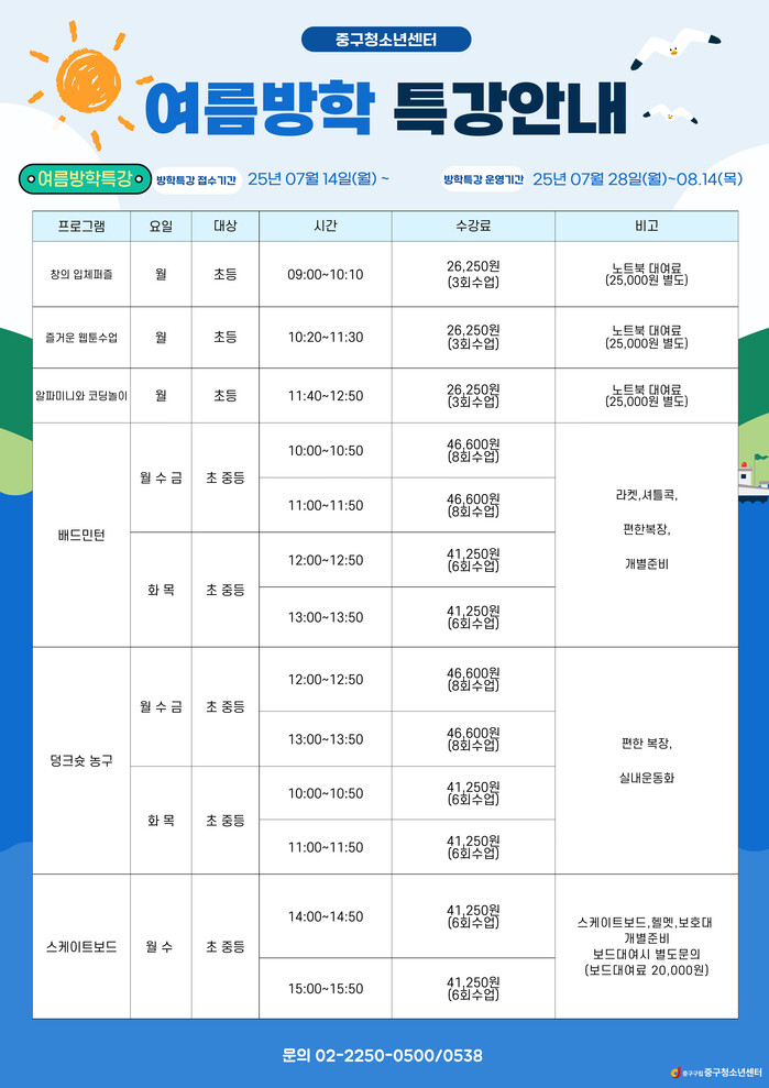 | ▲ 중구 여름방학 특강 포스터. (사진=중구청 제공) |