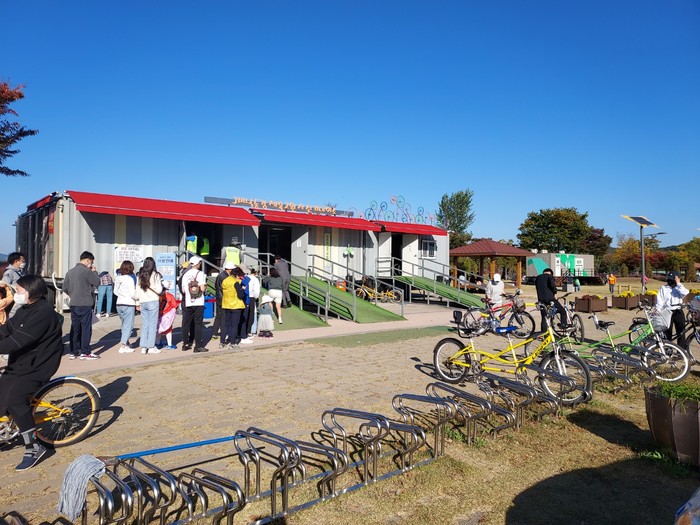 개인 소유의 자전거 운행의 책임은 그 개인에게 있지만 구미시가 운영하는 자전거 대여소는 안전사고 발생시에 시 책임으로 분쟁의 소지가 발생할 수 있기 때문.