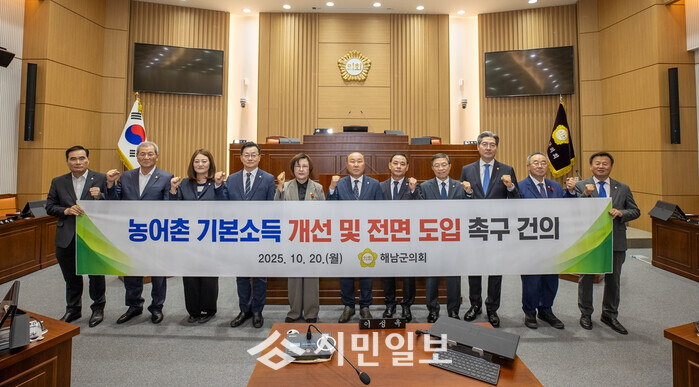 이에 해남군의회는 현 정책대로라면 인구소멸 위기와 지역 갈등이 심화될 것을 심각히 우려하며, 지역균형발전과 농어촌의 지속가능한 미래를 위해 ▲정부는 농어촌 기본소득 국비 부담 비율을 90% 이상 상향 ▲정부는 농어촌 기본소득 지급 금액을 월 30만 원 상향 ▲정부는 농어촌 기본소득을 전국적으로 전면 도입 ▲정부는 농어촌 기본소득업무 행정안전부 이관을 강력히 촉구한다고 밝혔다.