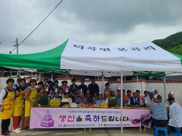 이번 사업은 사회적 가치실현을 위한 여성회 봉사활동 사업으로 바르게살기운동 합천군여성회에서 덕곡면을 방문하여 미역국, 수육, 잡채, 나물 등으로 마을 어르신 30여명에게 생신상을 차려드렸다.