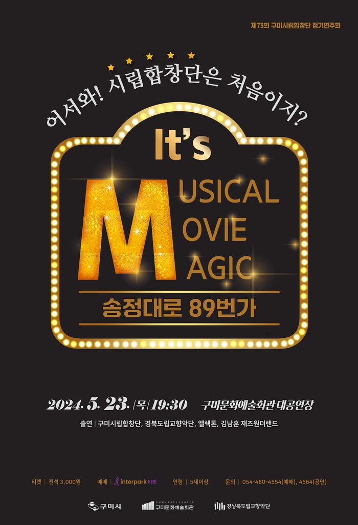 [구미=박병상 기자] 경북 구미시가 오는 5월23일 문화예술회관 대공연장에서 제73회 구미시립합창단 정기 공연 '어서 와! 시립합창단은 처음이지?'를 개최한다.