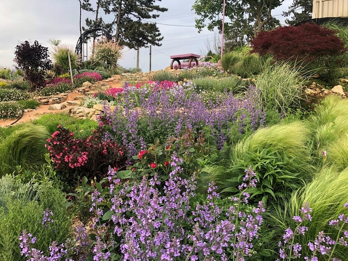 소나무 숲으로 둘러싸인 경사지의 지형을 그대로 살려 조성 당시 나오는 돌들로 돌담을 쌓고, 층층이 계단식 정원을 만들었다. 언덕 지형을 그대로 살려 그라스류와 다양한 다년초를 배치하고 건강을 위해 황토길도 조성해 영국식 정원의 풍광을 그려내고 있다.