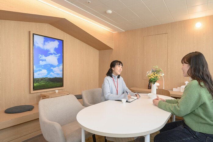 특히 상담실 벽면 한쪽에는 자연의 풍경과 소리를 감상하며 마음을 치유할 수 있도록 영상을 송출하는 ‘미디어풍경창(TV)’을 설치하고, 은은한 조도를 연출할 수 있는 조명과 목재 인테리어, 안락한 의자, 심리치유 도서 비치 등을 통해 상담 친화적인 공간을 연출했다.