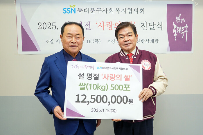 [시민일보 = 이대우 기자] 동대문구(구청장 이필형)는 지난 16일 동대문구사회복지협의회(회장 박상종)에서 민족 대명절인 설을 맞아 어려운 이웃을 위한 상주 삼백쌀 10kg 500포(환가액 1,250만원 상당)를 전달했다고 밝혔다.