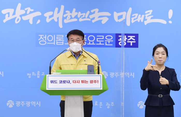 | ▲ 김종효 광주광역시 행정부시장이 3일 오후 시청 브리핑룸에서 코로나19 방역조치 강화 방안을 발표하고 있다./광주광역시 제공 |