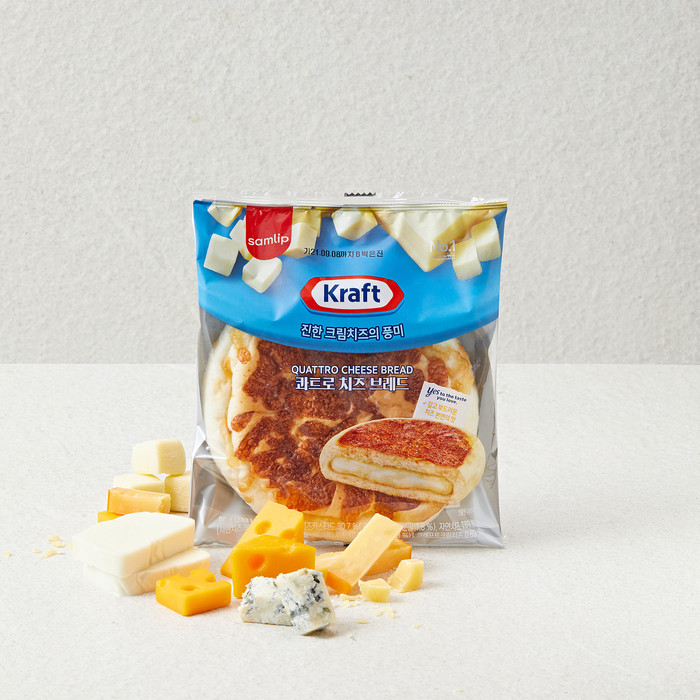 ‘콰트로 치즈 브레드’는 ‘크래프트 하인즈(Kraft Heinz)’의 크림치즈 4가지(모짜렐라, 체다치즈, 고다치즈, 고르곤졸라)를 사용해 특유의 고소한 치즈 풍미가 극대화된 제품이다. 특히 빵 위에 다양한 치즈를 얹고 눌러 구워내 치즈의 쫄깃한 식감을 느낄 수 있다. 제품을 전자레인지에 15초 데우면 더 맛있게 즐길 수 있다. 전국 슈퍼, 마트, 편의점에서 만나볼 수 있다.