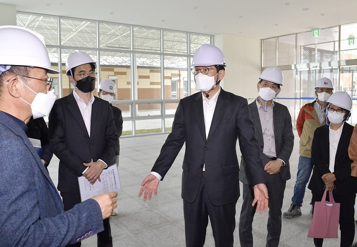 [광주=정찬남 기자] 조인철 광주광역시 문화경제부시장(가운데)이 14일 오후 광산구 신창동 마한유적 체험관 건립공사 현장을 방문해 사업 추진사항을 점검하고 있다./광주광역시 제공