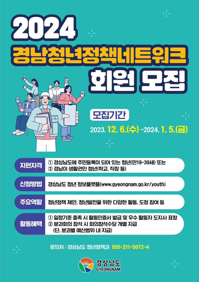 경남에 살고 있거나 경남이 생활권인 청년(19~39세)은 누구나 참여할 수 있으며, 경남도 청년 정보플랫폼을 통해 신청이 가능하다.