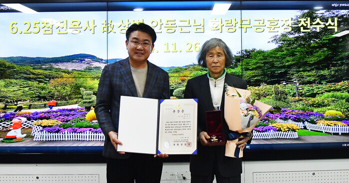 오 구청장은 “고(故) 안동근 참전용사의 숭고한 헌신과 희생에 감사와 존경을 표하며, 늦게나마 유가족에게 훈장을 전달하게 돼 뜻깊게 생각한다”며 “국가를 위해 헌신하신 분들의 공로가 잊히지 않도록 기억하고 예우하는 데 최선을 다하겠다”고 말했다.