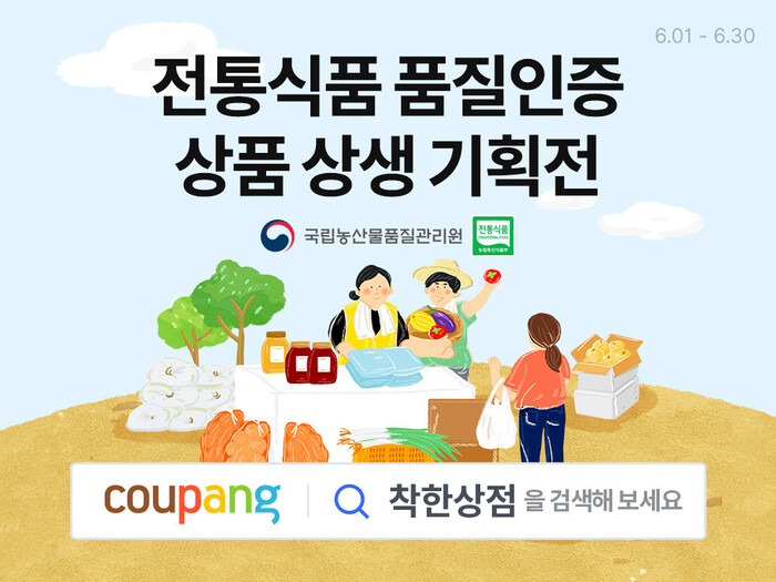 [시민일보 = 이대우 기자] 쿠팡이 국립농산물품질관리원과 함께 품질인증받은 전통식품과 술을 판매하는 ‘전통식품 & 술 품질인증품 기획전’을 진행한다. 까다로운 심사를 거친 고품질 전통식품을 오는 11월까지 6개월간 쿠팡 착한상점에서 만나볼 수 있다.
