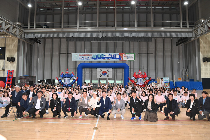 경기 하남시사회복지협의회가 최근 ‘하남시 사회복지종사자 제2회 한마음체육대회’를 개최한 가운데, 대회에는 200여명의 사회복지종사자들이 참여했다. 사진은 체육대회 관계자 및 참여자들이 기념 촬영하는 모습. (사진=하남시청 제공)