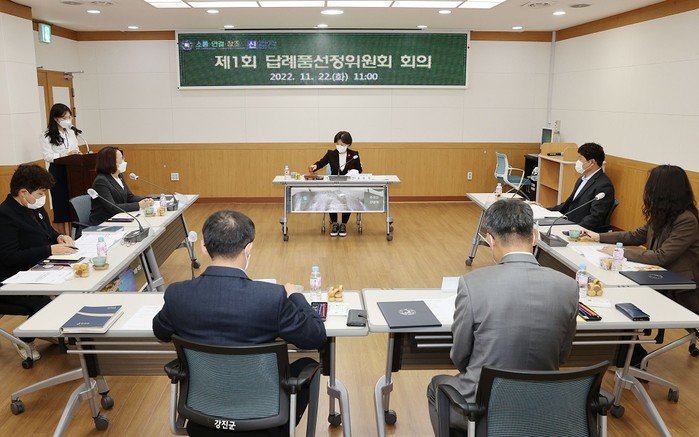 | ▲ 유미자 강진군 부군수가 지난 11월 22일 제1회 고향사랑기부제 답례품선정위원회 회의를 주재하고 있다. / 사진=강진군 제공 |
