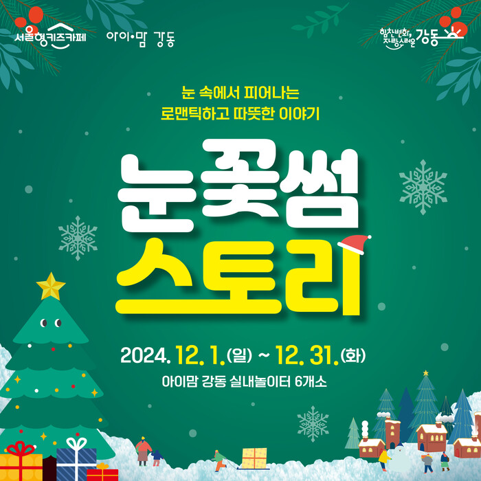 [시민일보 = 이대우 기자] 강동구(이수희 구청장)는 12월 1일부터 한 달간 ‘아이맘 강동 실내 놀이터’ 6개소를 겨울 테마 놀이터 ”눈꽃썸 스토리“로 운영한다고 20일 밝혔다.