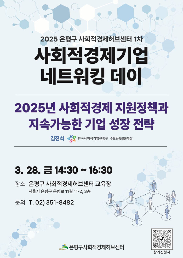 [시민일보 = 이대우 기자] 은평구(구청장 김미경)는 오는 28일 은평구 사회적경제허브센터에서 ‘사회적경제기업 네트워킹 데이’를 개최한다고 밝혔다.