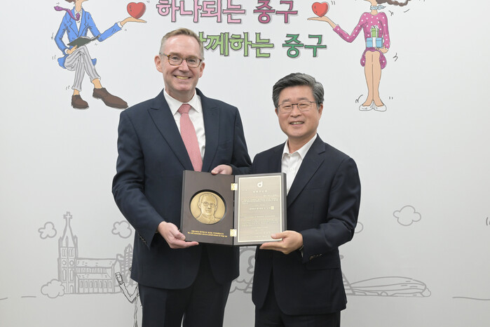 [시민일보 = 여영준 기자] 서울 중구(구청장 김길성)는 최근 콜린 제임스 크룩스(Colin James Crooks) 주한영국 대사에게 명예구민증을 수여했다고 밝혔다.