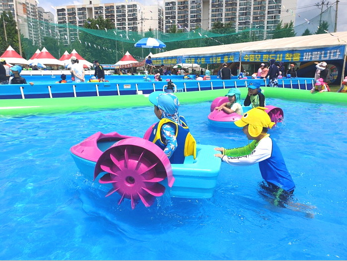 이에 ▲성인용 수영 ▲영유아용 수영장 ▲엥풀 ▲에어슬라이드 ▲대형 물썰매 슬라이드 등이 준비돼 구민을 맞는다.