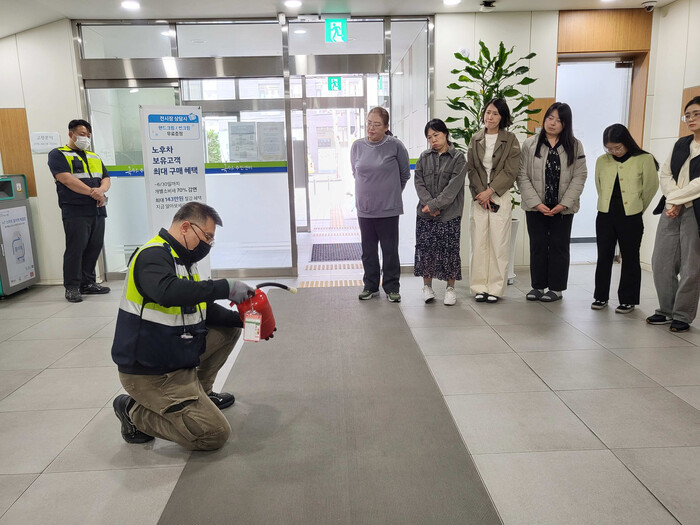 그리고 청사 내 소화기 위치와 대피로를 확인하고, 초기 화재 대응 요령과 소화기 사용 및 관리법 등에 대한 소방교육도 진행했다. 이번 훈련은 응봉동 주민과 직원들에게 안전사고 경각심을 일깨우고 초동조치의 중요성을 알리며 소방의식을 높였다.