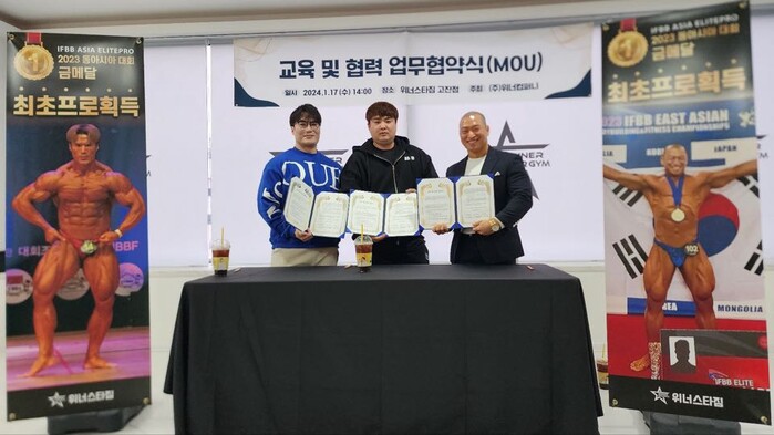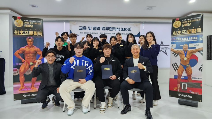 이번에 업무협약을 진행한 위너스타짐은 프리미엄 운동 공간을 제공하는 피트니스 브랜드로, 이날 협약식에는 위너스타짐 김석현 대표와 동아시아 챔피언 안창훈, 허윤 선수가 함께 참석했다.
