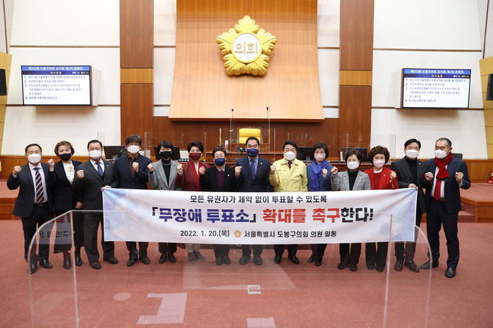 구의회는 임시회 첫날인 지난 20일 제1차 본회의에서 '무장애 투표소 실현을 위한 건의안'(이길연 의원 외 12인 발의)과 '수도권광역급행철도(GTX)-C노선 타당성 조사 및 기본계획에 따라 도봉산~창동 구간 지하노선 촉구 결의안'(이영숙 의원 외 13인 발의)을 만장일치로 채택했다.