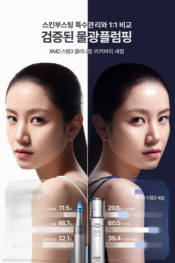 신제품 ‘XMD 스템3 클리니컬 리커버리 세럼’은 아이오페의 성분 연구와 기술력을 집약한 제품이다. 아이오페만의 독자 기술인 PDRN H.A.™ 복합체를 미세입자로 쪼개어 92.3% 고함량 적용해 피부 표피 전 층에 침투하도록 설계했다. 그 결과, 수분 볼륨 20.6% 증대, 모공 플럼핑 39.4% 개선을 포함해 피부 장벽 강화, 탄력 개선 등 피부 컨디션 회복과 물광 피부 구현에 탁월한 효과를 보였다.