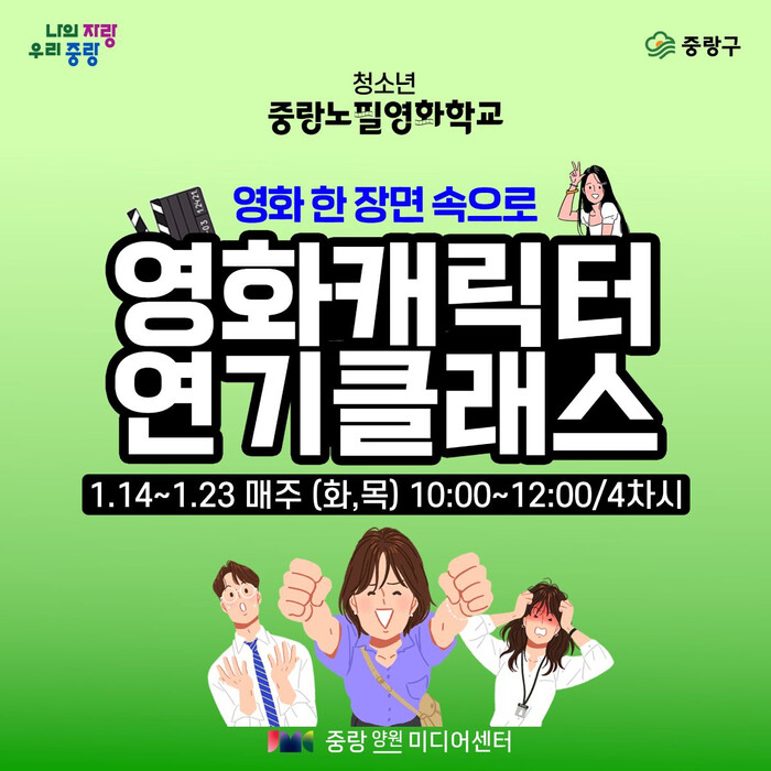 | ▲ 양원미디어센터 ‘노필영화학교 영화캐릭터 연기클래스’ 포스터. (사진=중랑구청 제공) |