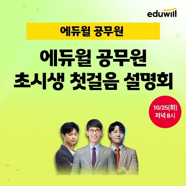 [시민일보 = 여영준 기자] 종합교육기업 에듀윌은 9급 공무원 수험 초시생들을 위해 오는 25일 오후 8시 ‘첫걸음 설명회’를 개최한다고 18일 밝혔다.