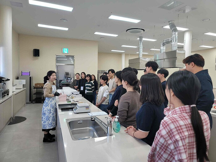 | ▲ 경남 밀양시가 진행한 ‘지역을 알고 선배에게 배우는 저연차 공무원 성장 워크숍’에서 참가자들이 쿠킹클래스 체험 프로그램에 참여하고 있다. |