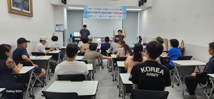| ▲ 녹번동, ‘친환경 비누만들기 체험 및 나눔’ 행사 강의 진행 모습 (사진=은평구청 제공) |