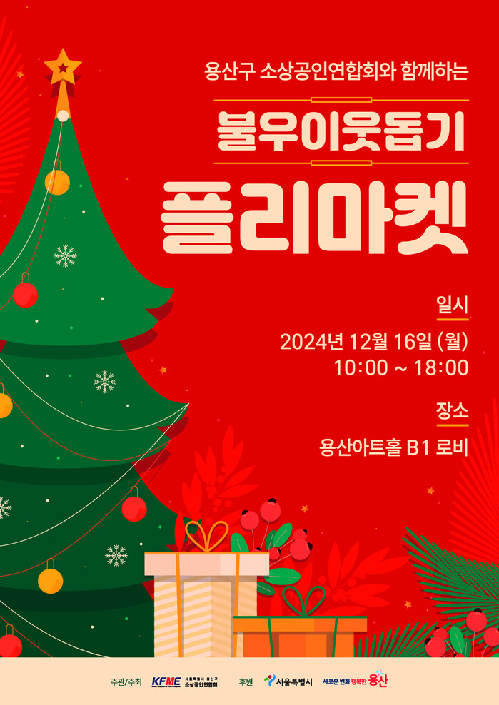 용산구 소상공인연합회 관계자는 “소상공인들이 함께 마음을 모아 어려운 이웃에게 따뜻함을 전하고자 한다”며, “많은 분들이 오셔서 쇼핑과 나눔의 기쁨을 동시에 느끼시길 바란다”고 말했다.