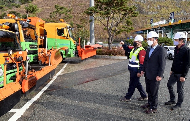 | ▲ 김종효 광주광역시 행정부시장이 1일 오후 제2순환도로 소태영업소를 방문해 겨울철 제설대책 준비사항을 보고 받은 후 제설장비를 살펴보고 있다./광주광역시 제공 |