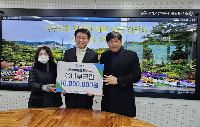 노원구청장실에서 열린 전달식에서 ㈜나루크린 정화찬 대표는 "'문화도시 노원'을 지향하는 노원구청에 지역사회 문화 발전과 문화 사업 육성에 적극적인 협력을 하겠습니다. 향후에도 지역 문화예술 발전에 기여할 수 있도록 지원을 지속적으로 확대하겠다"라고 약속했다.