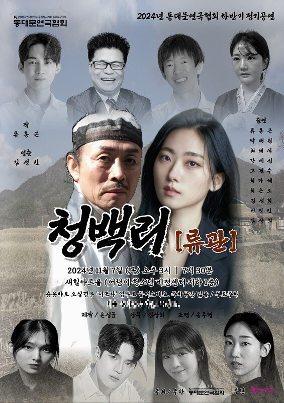 이번 연극은 서일대학교 연극영화과 교수 출신인 김성빈 감독이 연출을 맡았으며 주인공인 류관 역에는 배우 류홍근, 범숙 역에는 배우 김성희가 캐스팅됐다. 이밖에도 포장마차 주인과 이방 역에 박태원 배우, 정철과 호방역에 최태식 배우, 장훈 형방 세종대왕 역에 강예섭 배우, 백채환 곽만술 역에 고권수 배우, 류관의 부인 역에 최다혜 배우, 은도 역에 최은오 배우, 서정수와 환구 역에 이정민 배우, 류관 메신저 역에 임상희 안무자가 승선 정옥 배우의 역할도 겸한다. 이들 중 박태원, 최태식, 고권수 등 주조연급 배우 들이 서울 동대문구 출신이다.