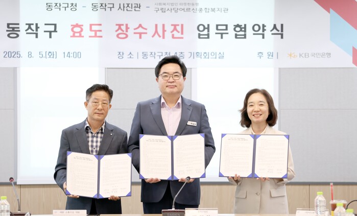 [시민일보 = 여영준 기자] 서울 동작구(구청장 박일하)는 최근 구청 기획회의실에서 사당어르신종합복지관, 사업 참여 사진관 31곳과 ‘효도 장수사진 사업’ 업무 협약(MOU)을 체결했다고 6일 밝혔다.