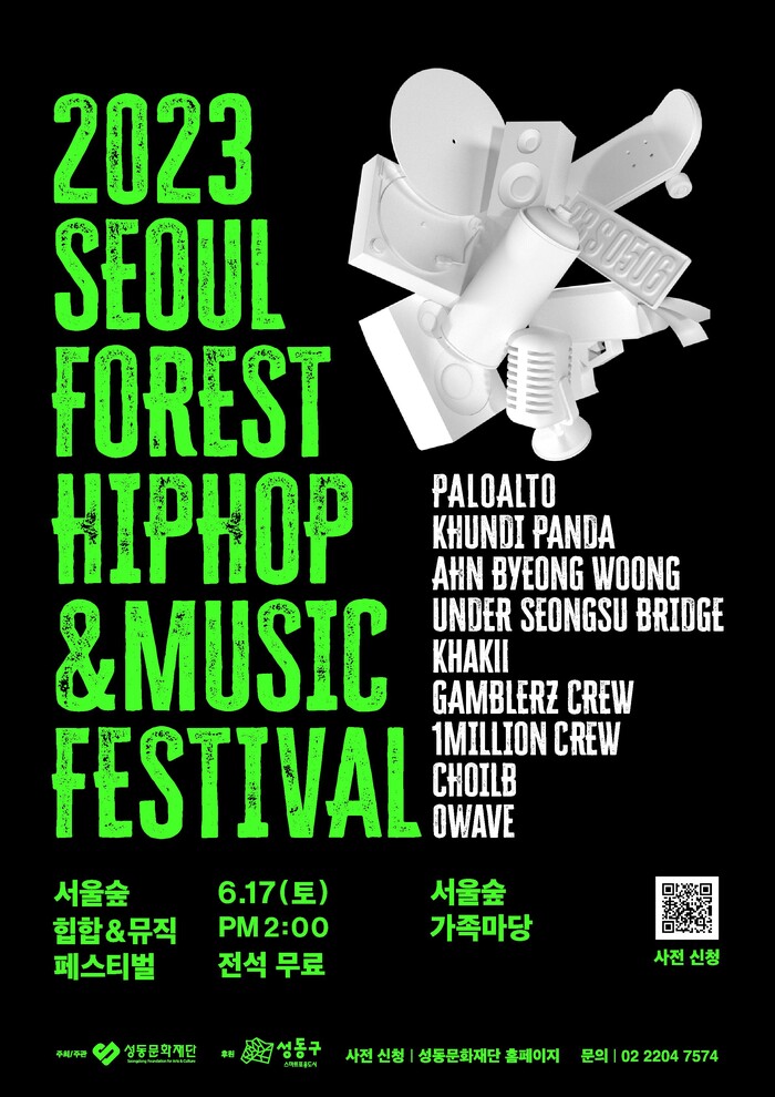[시민일보 = 홍덕표 기자] 서울 성동구(구청장 정원오)는 오는 17일 서울숲공원에서 다양한 세대와 문화로 소통하고 즐기는 음악축제, '2023 서울숲 힙합&뮤직 페스티벌'이 열린다고 밝혔다.