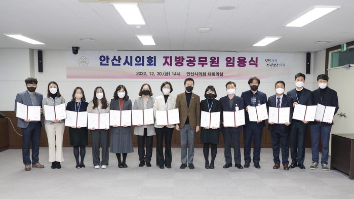 | ▲ 안산시의회가 지난 1월1일자로 의회사무국 인사를 단행했다. 사진은 지난해 12월 30일 의회 대회의실에서 열린 의회 지방공무원 임용식 모습. |