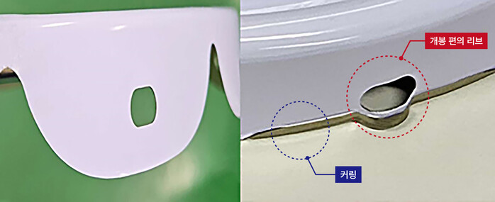 | ▲ 18리터 라운드캔 뚜껑 개선 전(왼쪽), 후(오른쪽) 비교 사진 (사진= KCC 제공) |