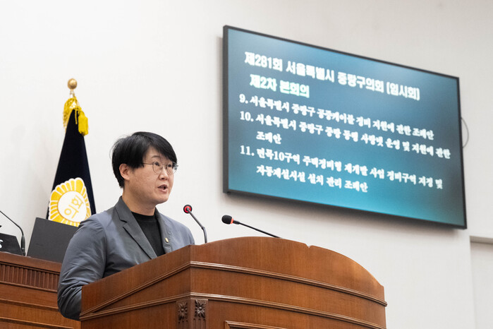 | ▲ 김대형 의원이 제281회 임시회 제2차 본회의에서 5분 자유 발언을 하고 있다. (사진=중랑구의회 제공) |