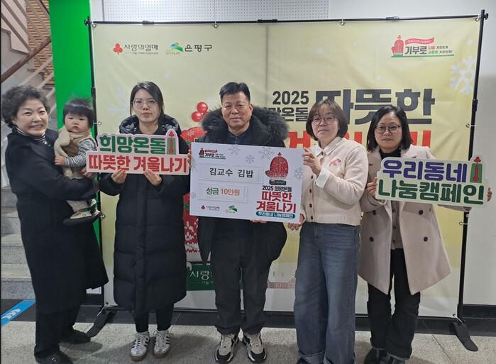 [시민일보 = 이대우 기자] 은평구(구청장 김미경) 불광1동은 지난 10일 김교수 김밥이 따뜻한 겨울나기 성금 1십만 원을 전달하며 이웃을 위한 기부에 동참했다고 밝혔다.