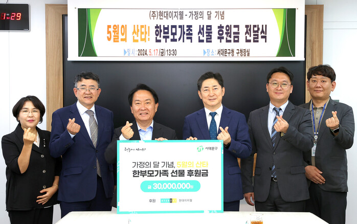 [시민일보 = 변은선 기자] 서울 서대문구(구청장 이성헌)는 최근 (주)현대이지웰로부터 취약계층을 위한 ‘가정의 달 선물 후원금’ 3천만 원을 기탁받았다고 20일 밝혔다.