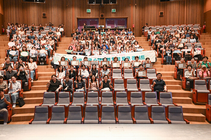 경기 의정부시가 최근 시청 대강당에서 위기이웃 발굴 수행인력을 대상으로 역량강화 교육을 진행했다. 교육은 명예사회복지공무원 유공자 표창과 특강 순으로 구성됐다. 사진은 김동근 시장이 참석자들과 기념 촬영을 하는 모습. (사진=의정부시청 제공)