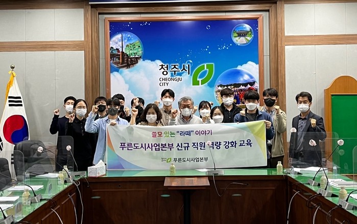 청주시 푸른도시사업본부가 13일 ‘쓸모 있는 라떼 이야기’라는 주제로 신규 직원 26명을 대상으로 역량 강화교육을 실시했다.