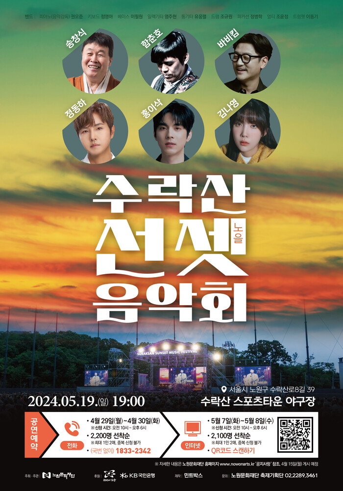 [시민일보 = 변은선 기자] 서울 노원구(구청장 오승록)는 오는 19일 오후 7시 수락산 스포츠타운 야구장에서 2024년 ‘수락산 선셋 음악회’를 개최한다.