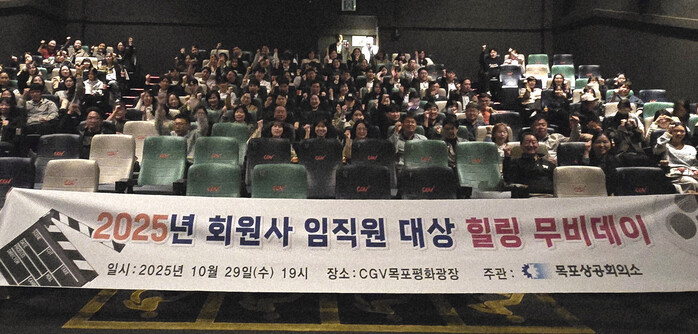 [목포=황승순 기자]목포상공회의소(회장 정현택)는 지난 10월 29일(수) 2025년 회원사 임직원 대상 ‘힐링 무비데이’를 성황리에 개최했다.