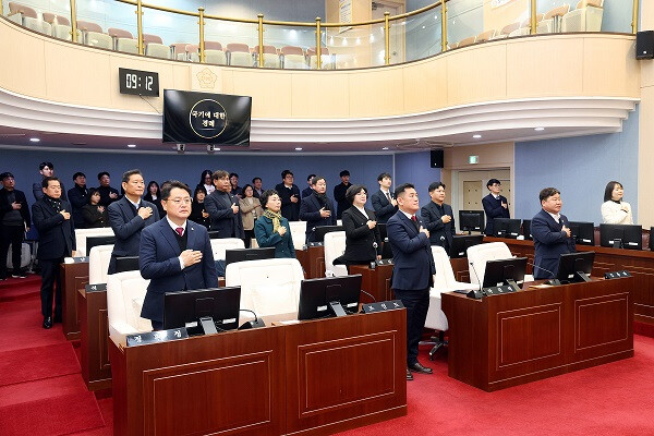 허홍 의장은 신년 인사를 통해 지난 한 해 의정활동을 돌아보며, 2026년 새해에도 시민과 함께 소통하고 책임 있는 의정활동을 펼쳐나가겠다는 의지를 밝혔다. 시무식은 참석자 기념촬영을 끝으로 마무리됐다.