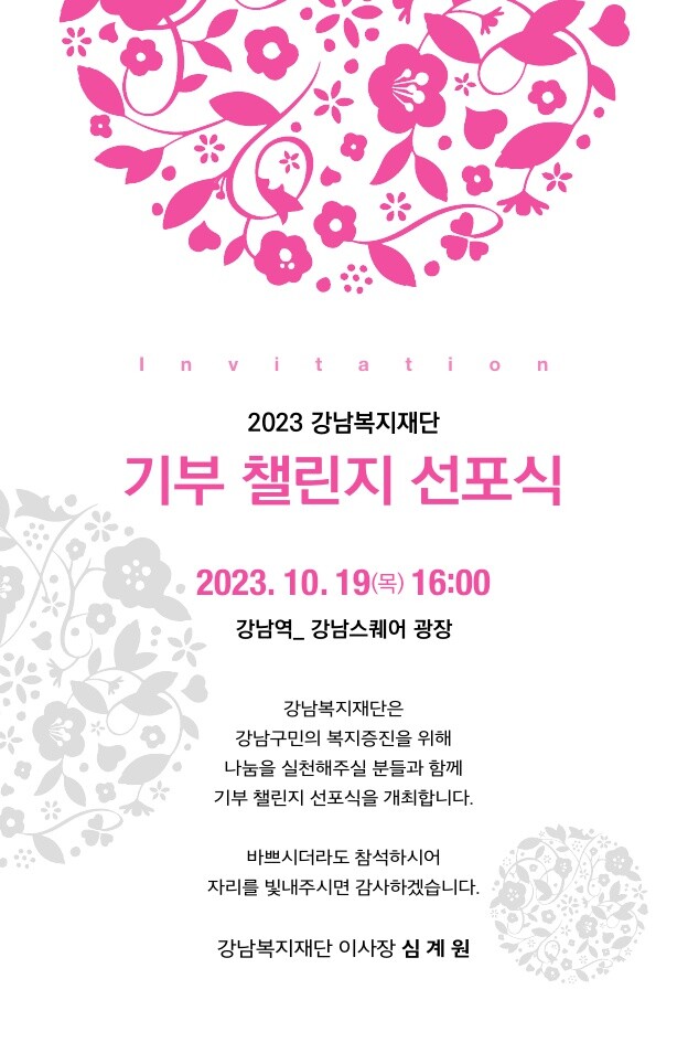 심계원 이사장은 “이번 행사를 통해 복지사각지대에 있는 위기가구를 지원하는 강남복지재단의 역할을 알리고, 지역사회의 나눔 문화 실천이 이어지길 바란다”고 전했다.